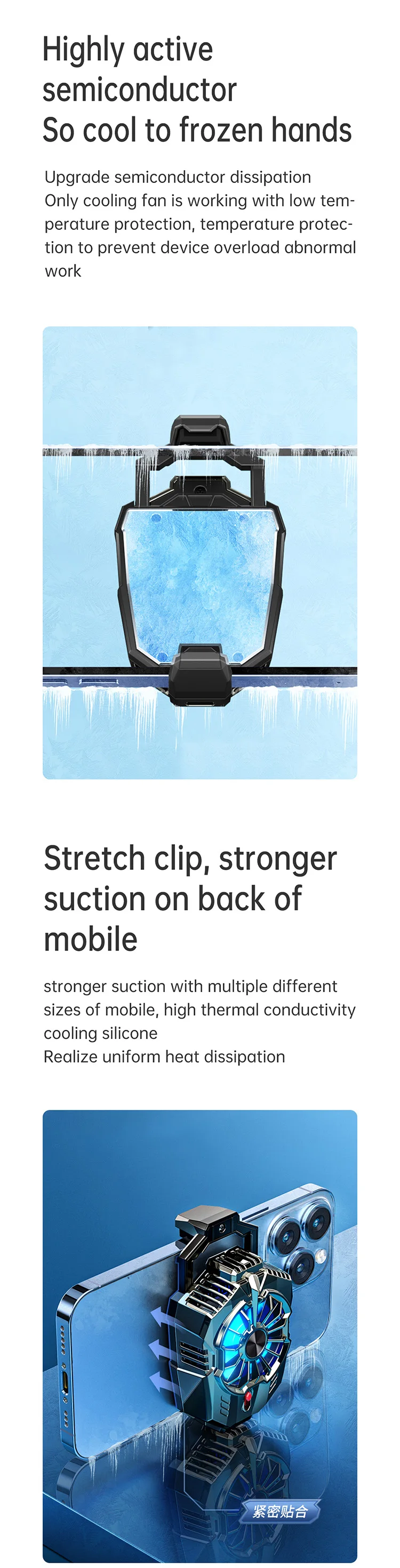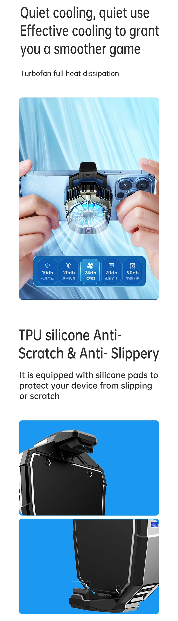 Its silent cooling fan and adjustable clamp design make it compatible with most Android and iOS devices. Whether you're an eSports gamer, content creator, or heavy user, this mobile phone cooler keeps your device running efficiently.