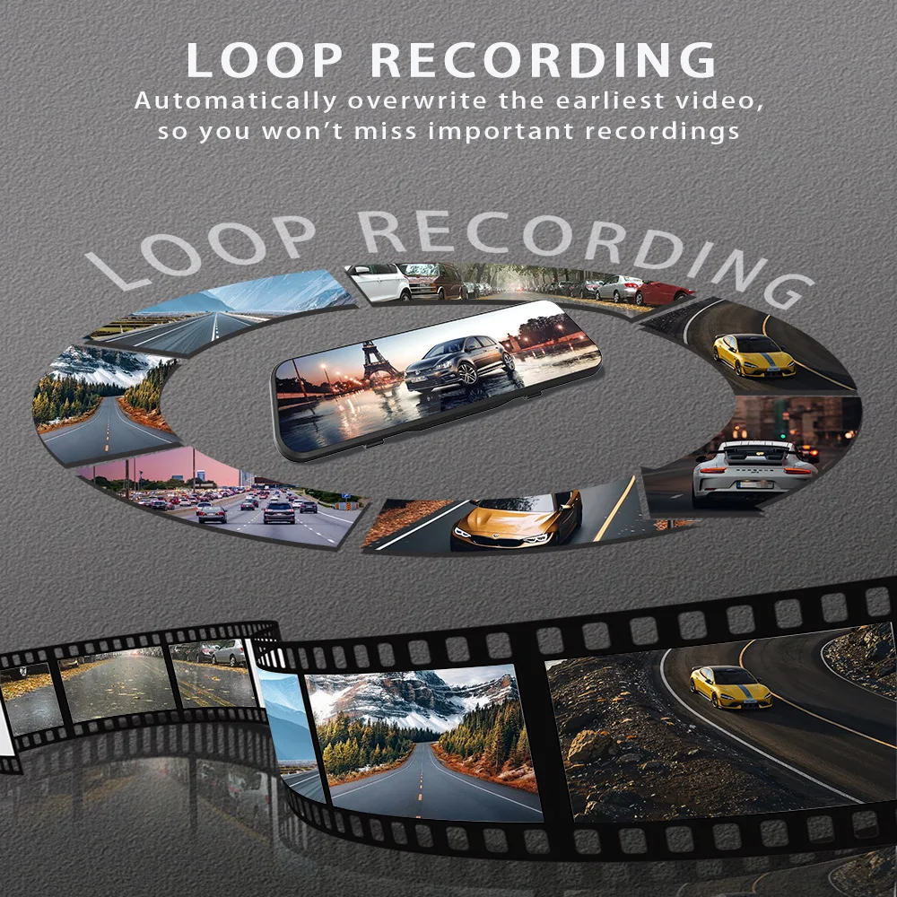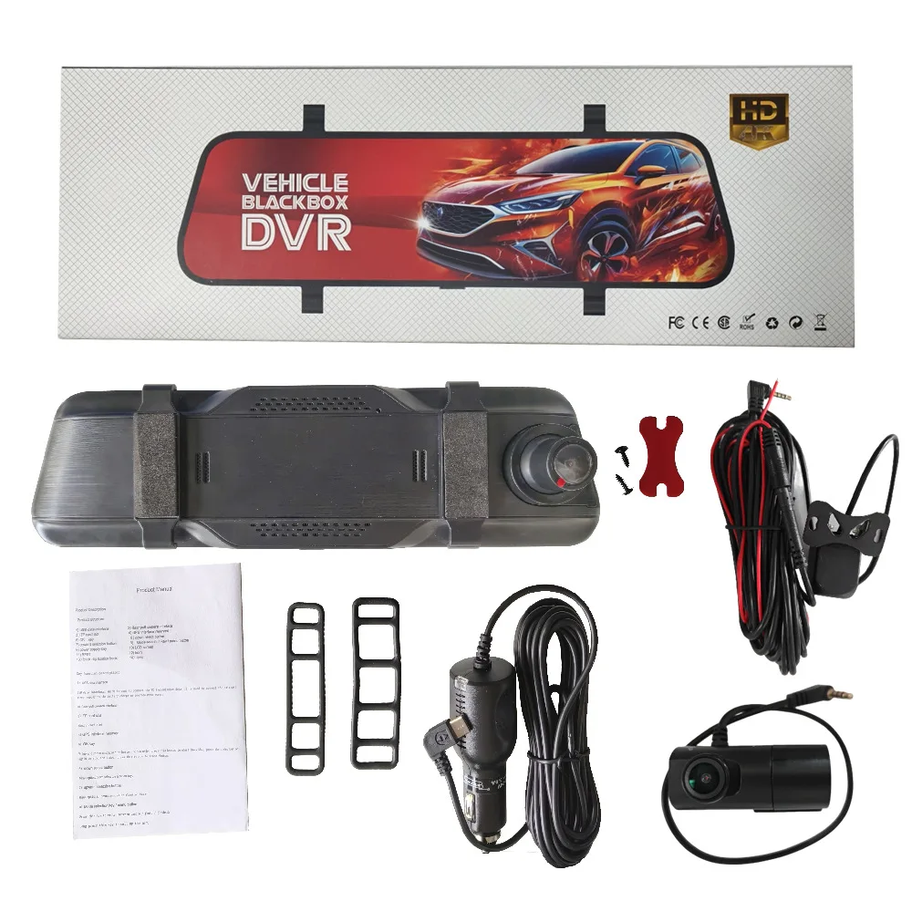 10 Inch 4K Mirror Dash Cam ADAS Dual Lens Front Re...