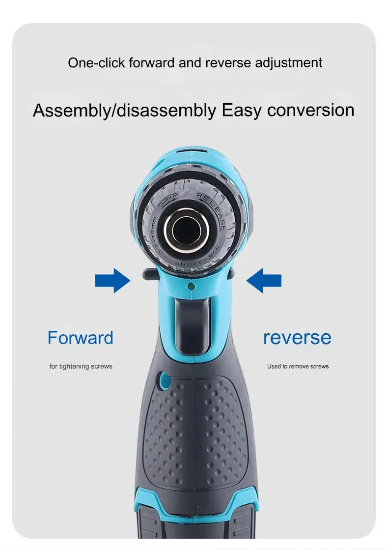 Dual-Purpose Function: Works as a drill + screwdriver for all-round use.
