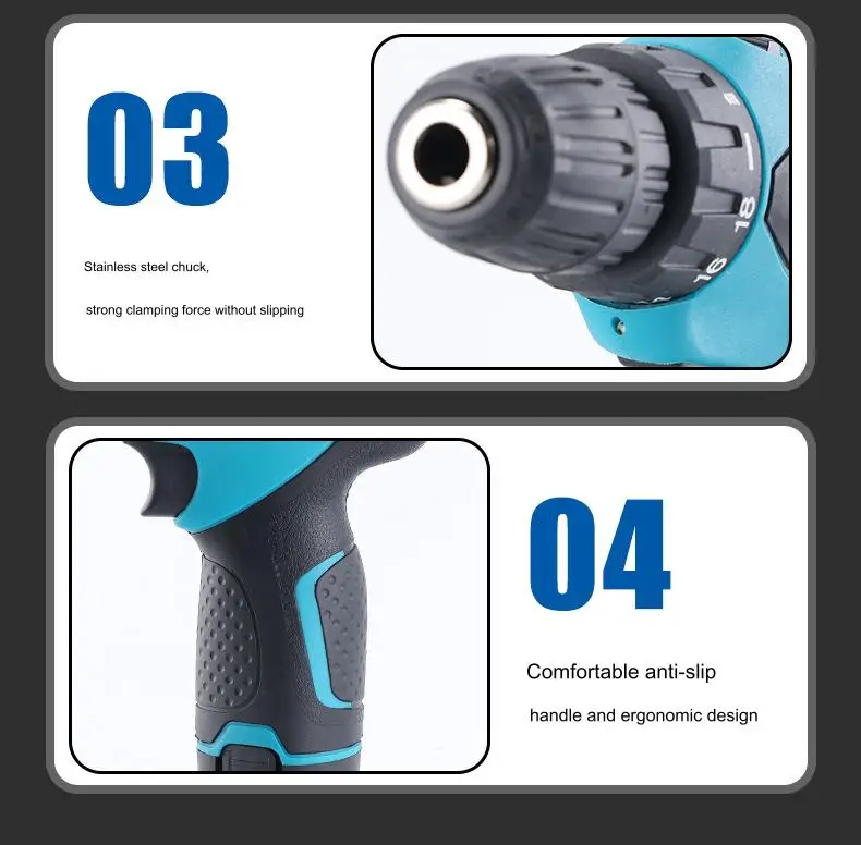 The 12V High-Power Dual-Purpose Cordless Drill/Driver is designed for users who want power and convenience in a single compact machine. Its cordless design allows you to work anywhere — whether it’s home, workshop, or outdoor installation — without depending on electric outlets.