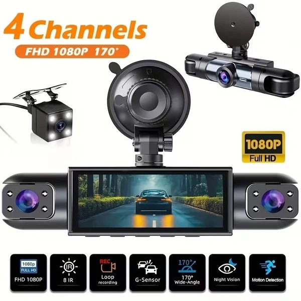 4-Channel Dash Cam 360° Panoramic, FHD Front & 720...