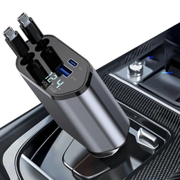 "Power up your journey with this 4-in-1 Retractable Car Charger featuring dual USB ports and high-speed charging for both Type-C and iPhone devices. Designed for ultimate convenience, this compact charger with retractable cables ensures a fast and tangle-free charge on the go. Perfect for travel and compatible with multiple devices!