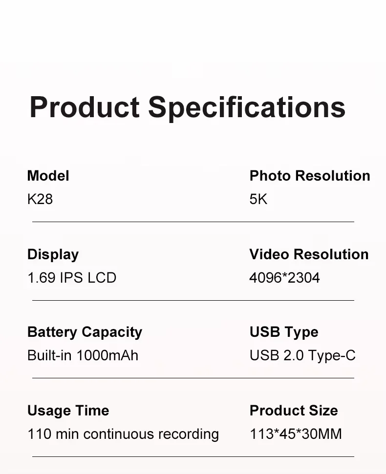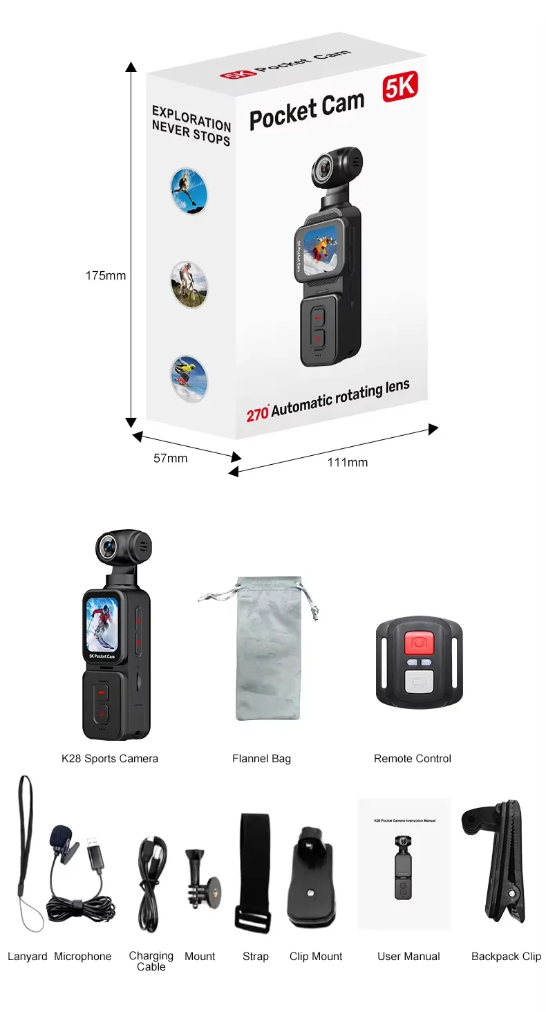 4K High Action Camera K28 Rotatable Anti-Shaking 30m Waterproof Outdoor Camera for Riding Diving Portable Video Mic