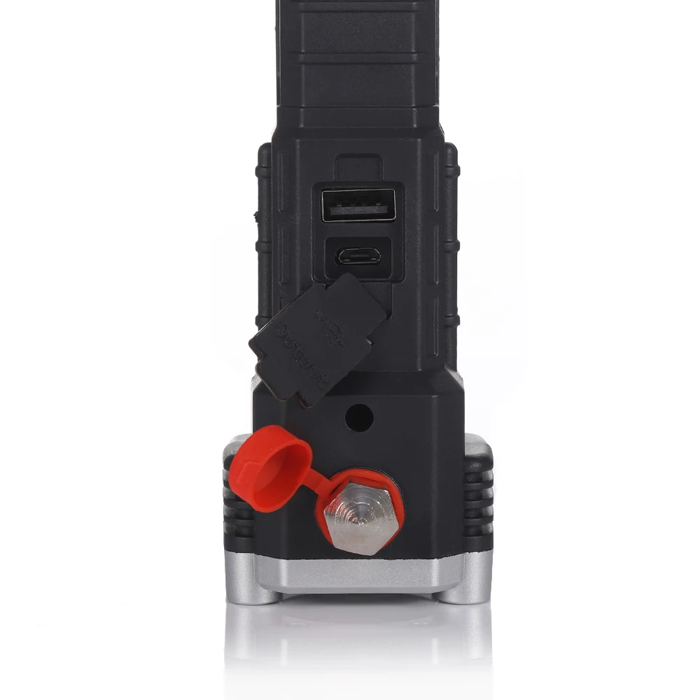 Multiple Lighting Modes: Includes front LED light, side floodlight, red warning light, and flashing emergency mode.