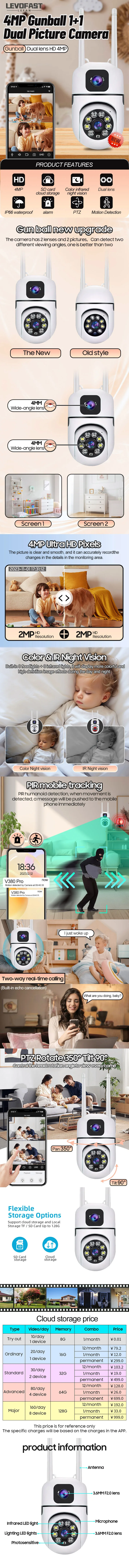 It supports cloud storage and TF card storage (usually up to 128GB).