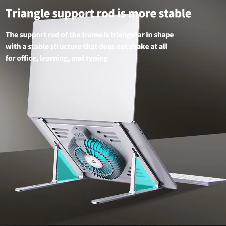 Aluminum Alloy Laptop Stand with 3-Speed Electric Fan – Anti-Slip, Adjustable, Foldable & Heat Dissipation