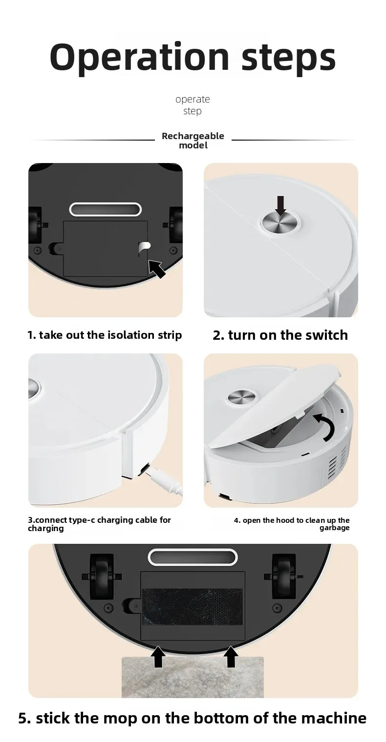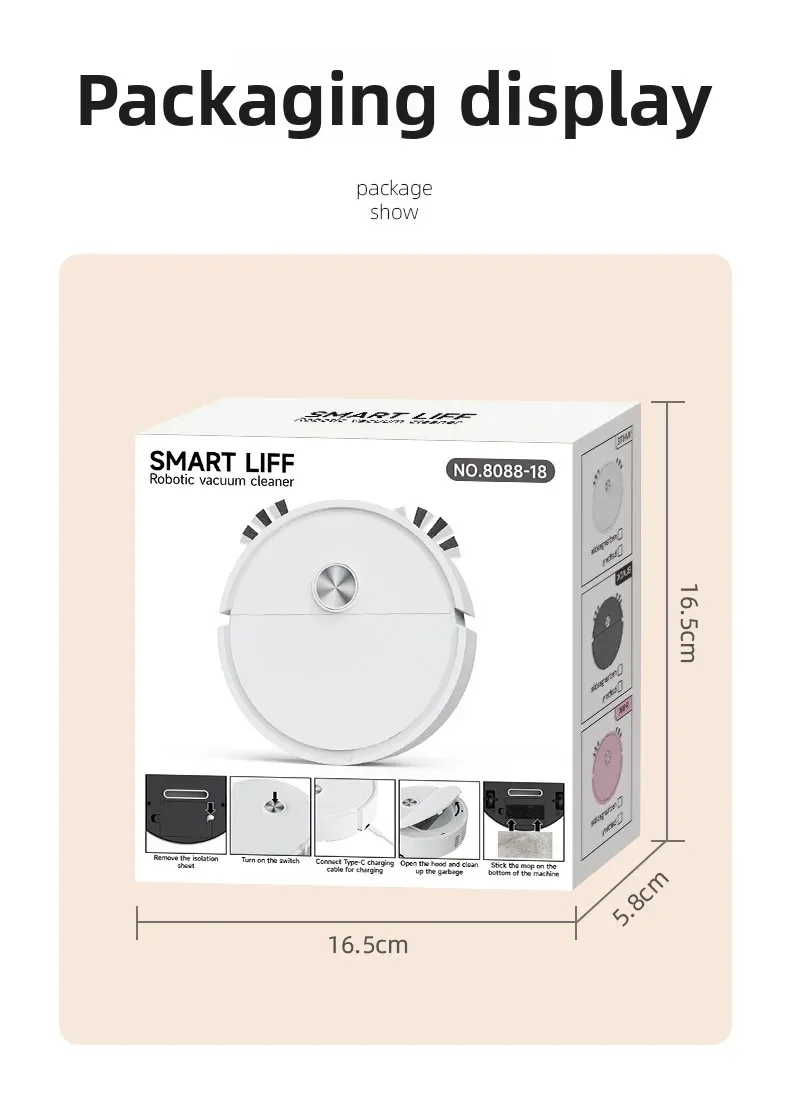 The removable mop pad allows you to switch between dry vacuuming and damp mopping for shiny, dust-free floors. Its low-noise motor ensures a quiet cleaning experience while efficiently reaching corners and under furniture. Perfect for homes, offices, and even small shops, this robot cleaner makes cleaning effortless and fun.