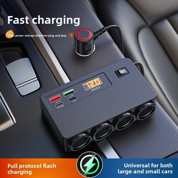 Compatible with 12V and 24V car systems, it works perfectly in cars, SUVs, and trucks. Built with ABS fireproof material, this multi-port fast car charger also includes overcurrent protection for worry-free usage.