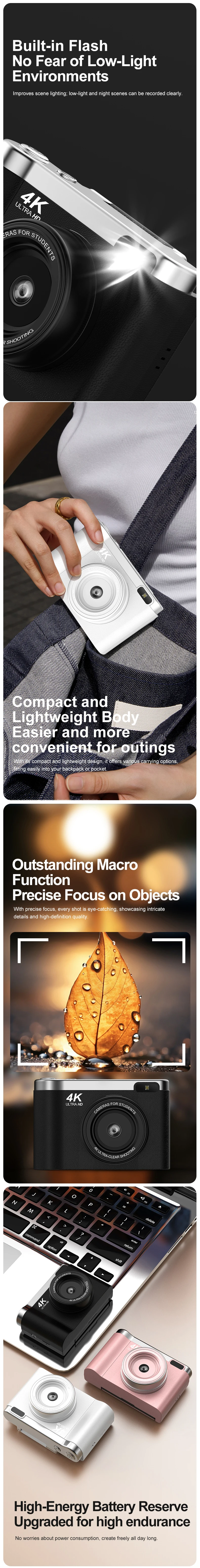 Expandable micro SD card storage gives you the flexibility to store more photos and videos, and the rechargeable battery ensures convenience during extended shooting sessions. Compact, lightweight, and simple to operate, this camera is well-suited for beginners, students, travelers, and hobby users.