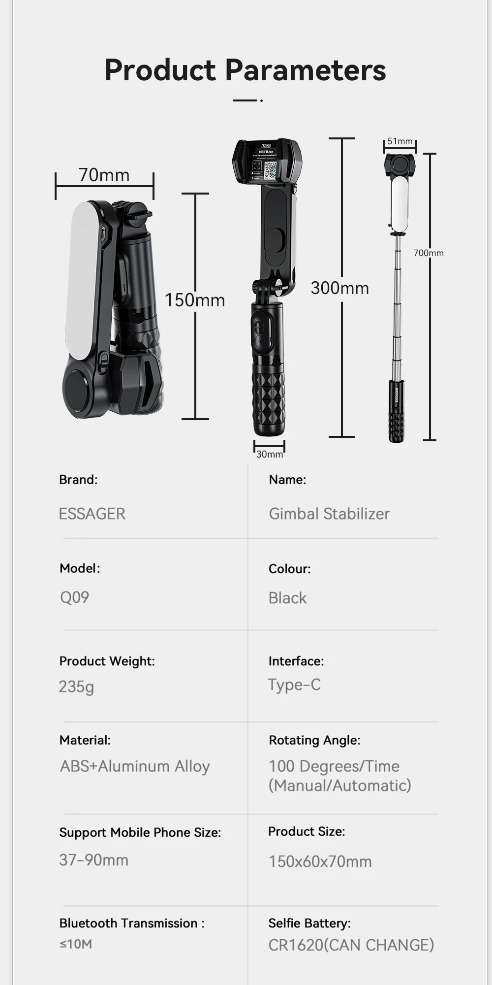 ✅ 3-in-1 Design – Functions as a gimbal stabilizer, extendable selfie stick, and tripod.