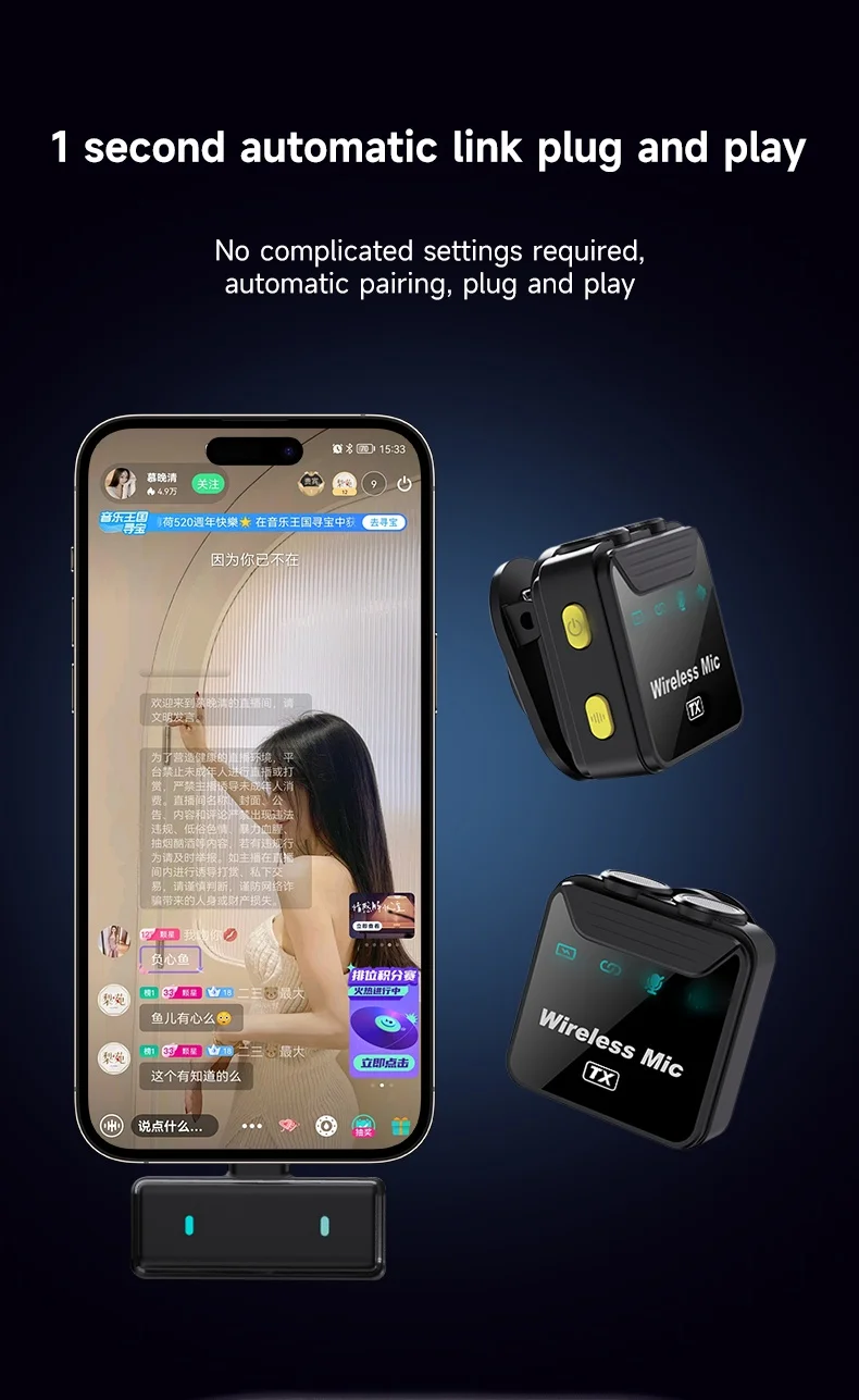 The receiver supports both Type-C and Lightning connectors, making this mic system compatible with a wide range of devices — from Android phones and tablets to iPhones and iPads. With a lightweight ABS body, the system is easy to carry, and the plug-and-play design makes it accessible even to beginners.