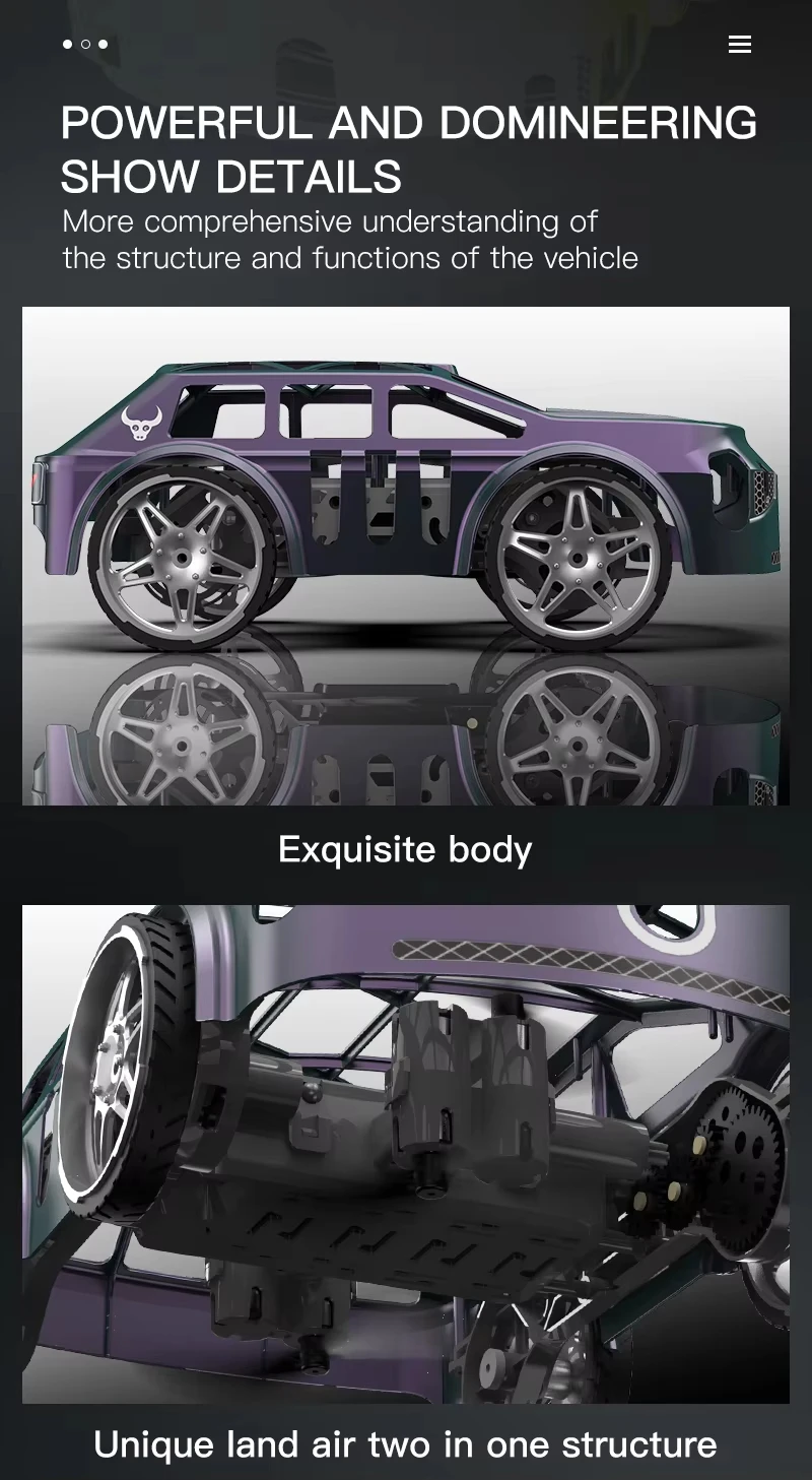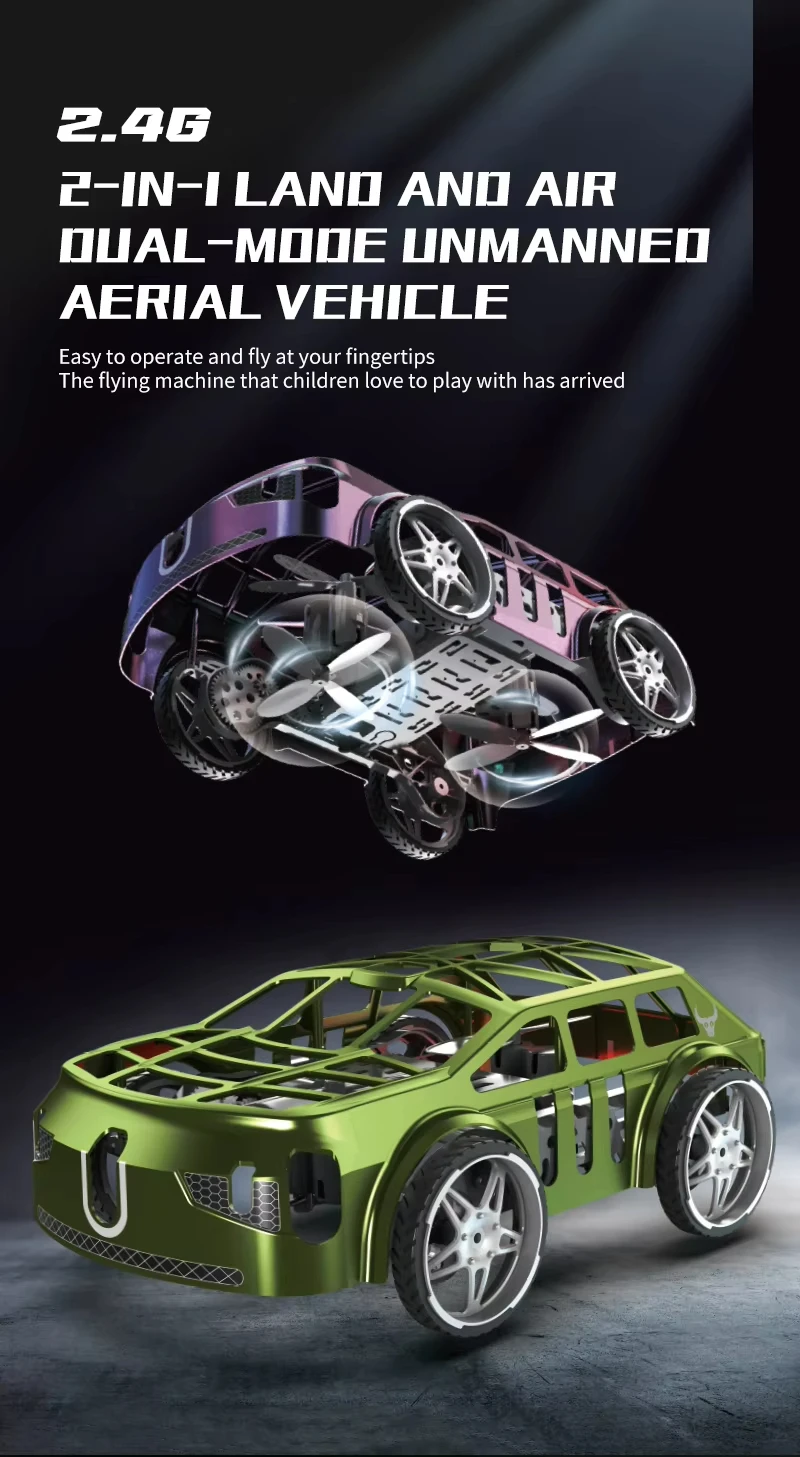 Unleash creative aerial fun with the 2-in-1 RC Drone & Land Vehicle. This innovative RC toy blends flight and ground driving in one compact unit. Designed with a foldable quadcopter build, it packs easily for travel and outdoor play.