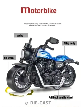 Bring everyday fun and exciting motion into kids’ hands with the Mini Alloy Motorcycle Pull-Back Toy. Designed with a classic motorcycle silhouette and vibrant finish, this toy stands out in both play value and collectible appeal.