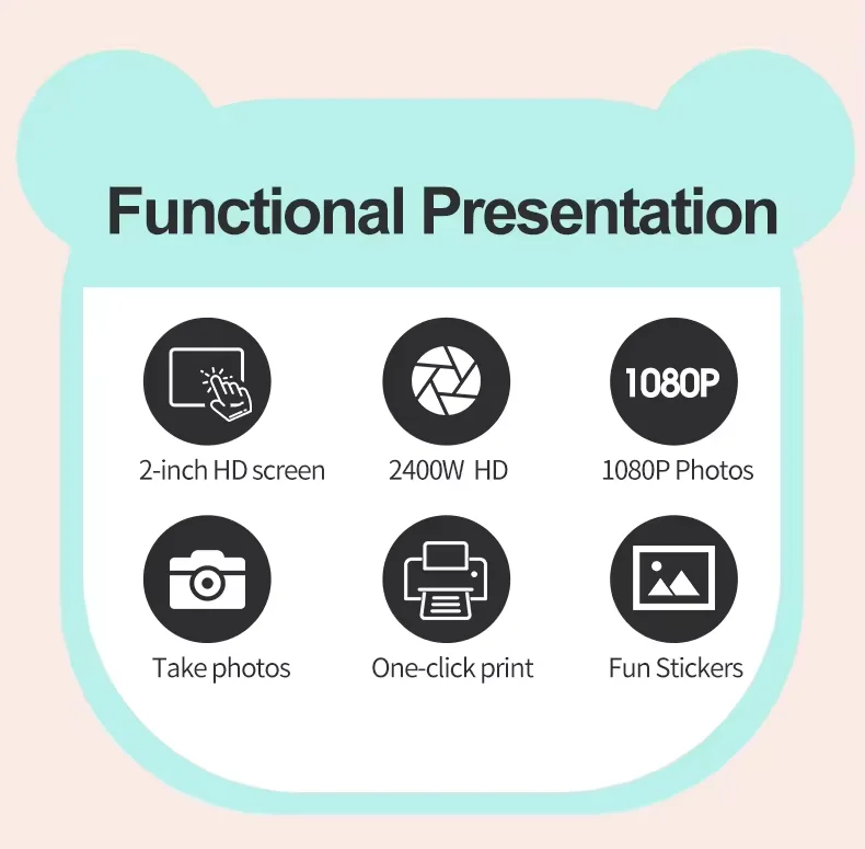 Mini printer camera 2.0-Inch Kids Instant Print Camera – Fun & Educational Toy with Thermal Printing