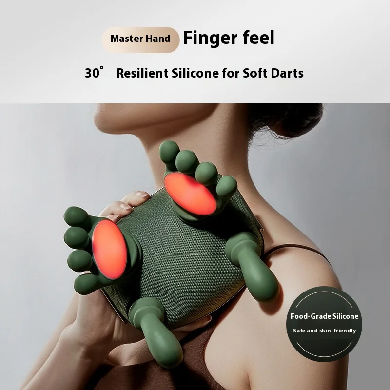 Designed for safety, the device includes an automatic shut-off timer and thermal limiter to prevent overheating. Its wrap-around ergonomic design, combined with comfortable memory-foam or PU-leather padding, ensures a secure fit and maximum comfort during use.