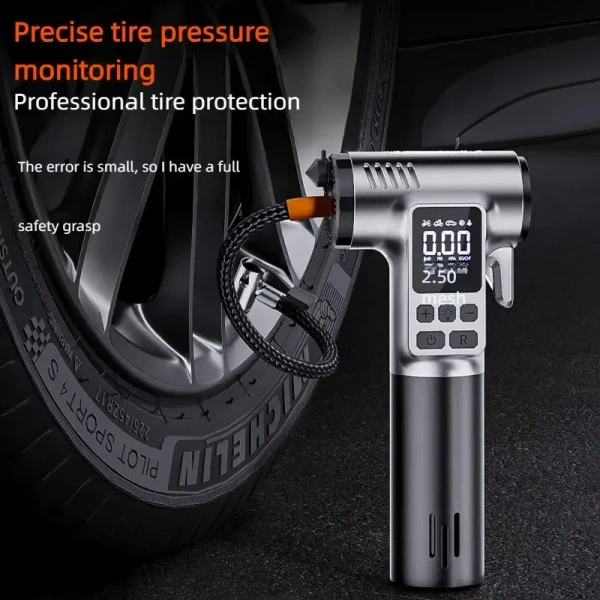 Equipped with a digital pressure display, this pump allows precise control over tyre pressure, helping improve vehicle performance, fuel efficiency, and safety. Its compact and lightweight design makes it easy to store in your car, backpack, or garage.