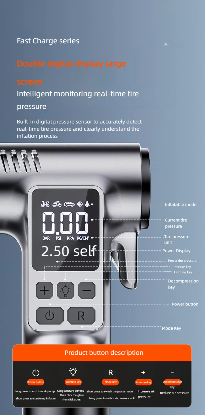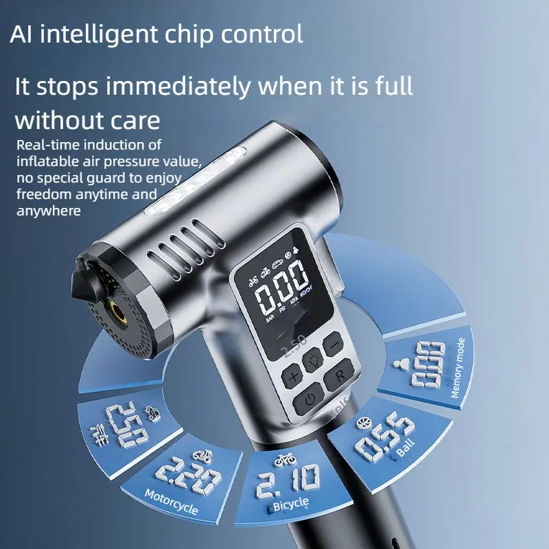 • Digital Pressure Display – Accurate PSI reading, avoids over-inflation