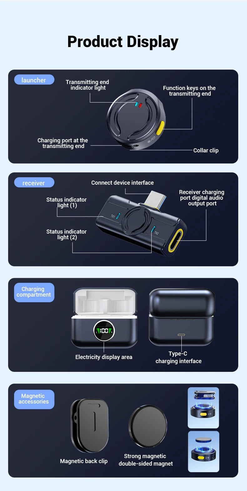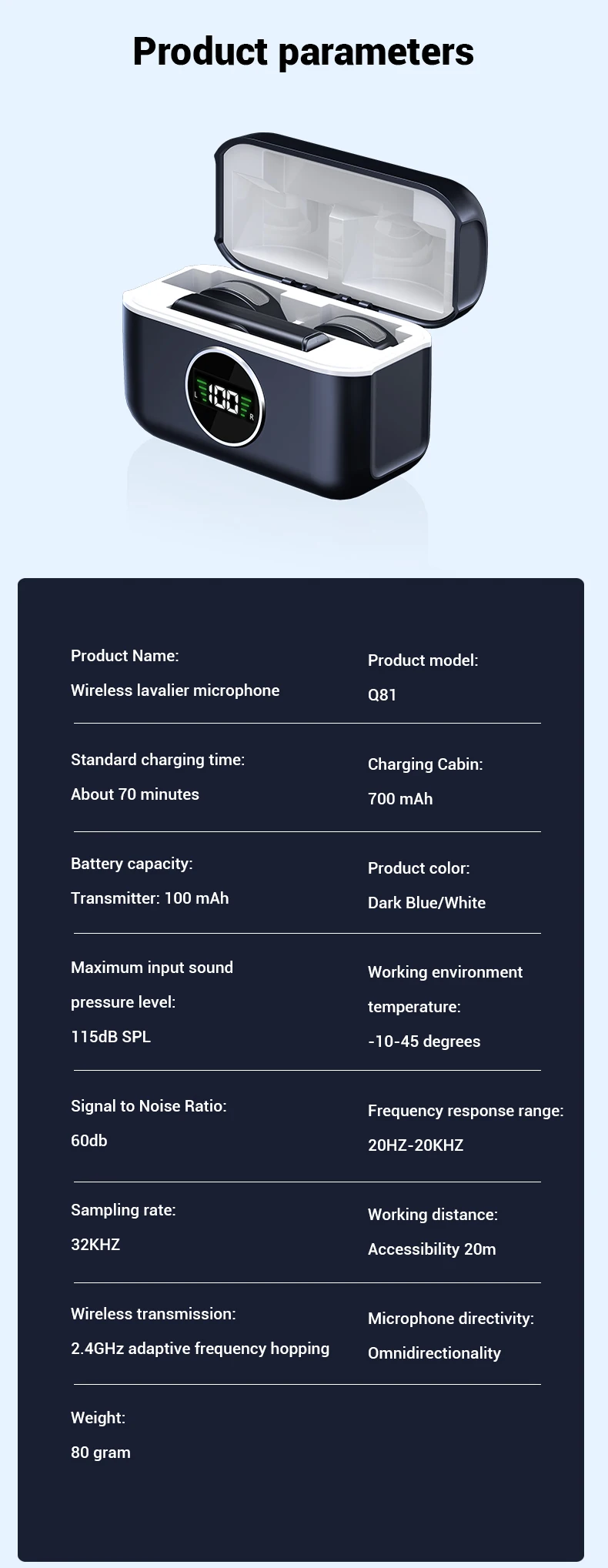 Q81 Portable Wireless Button Microphone – 2.4 GHz, Noise Reduction & Charging Case
